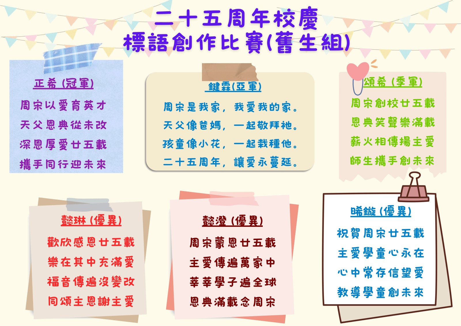 二十五周年校慶設計比賽得獎名單