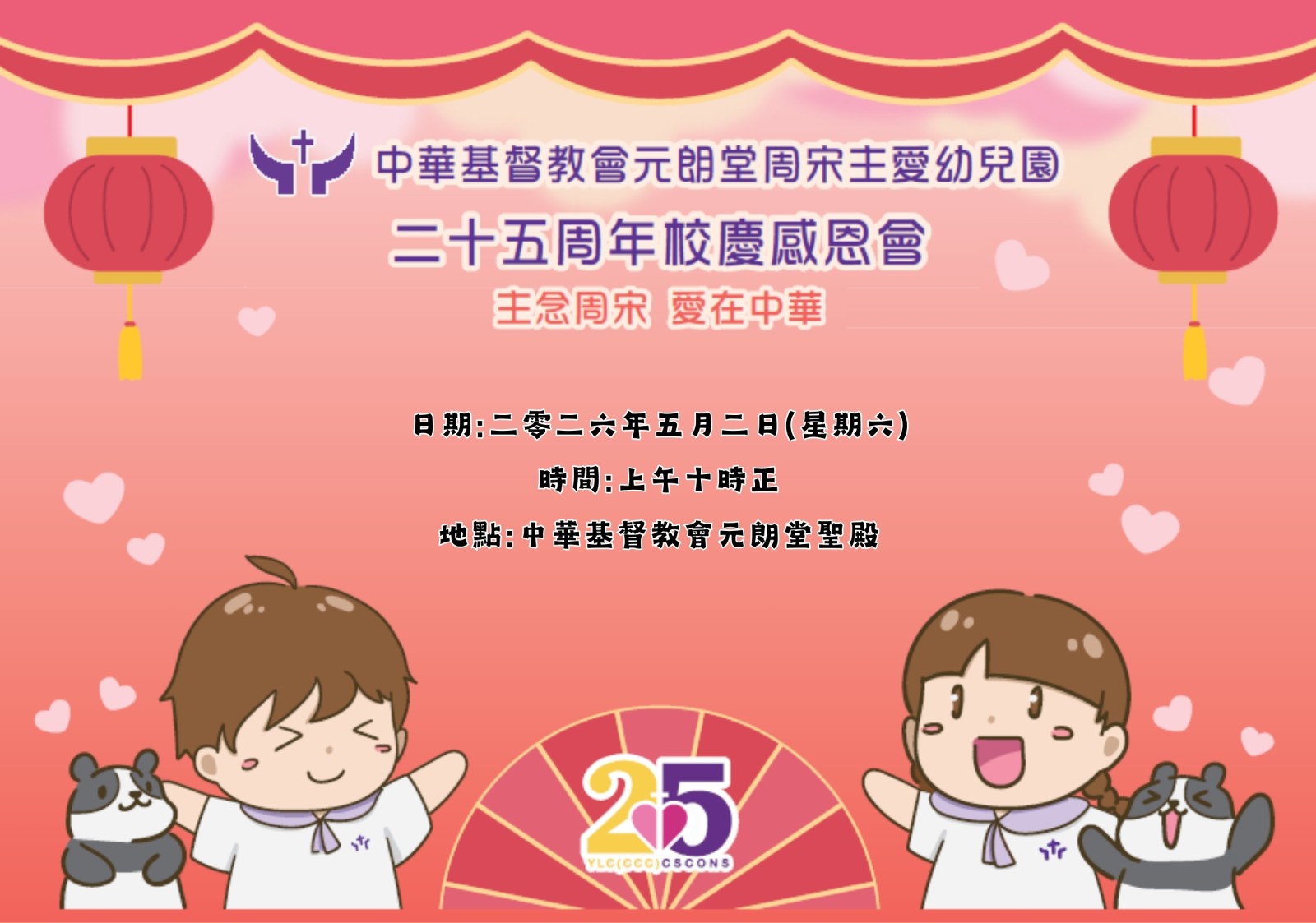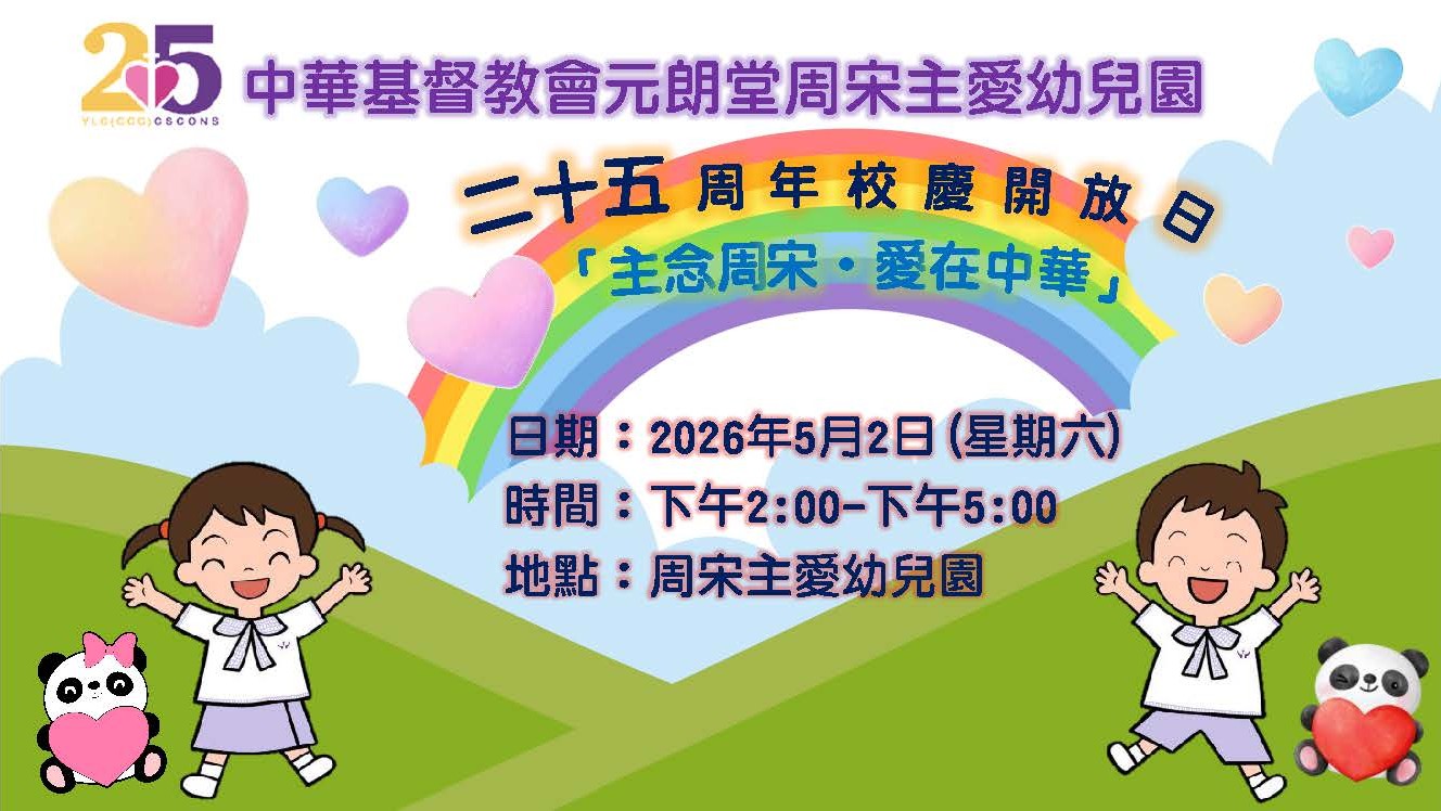 周宋主愛幼兒園將踏入25周年了,在這個歡樂感恩的日子,誠意邀請您們一同參與我們的25周年慶祝活動。